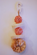 金属を使用せず自然素材の籐(ヤシ科のつる)やトウモロコシの皮、ヘチマで作った小鳥に優しいおもちゃです。